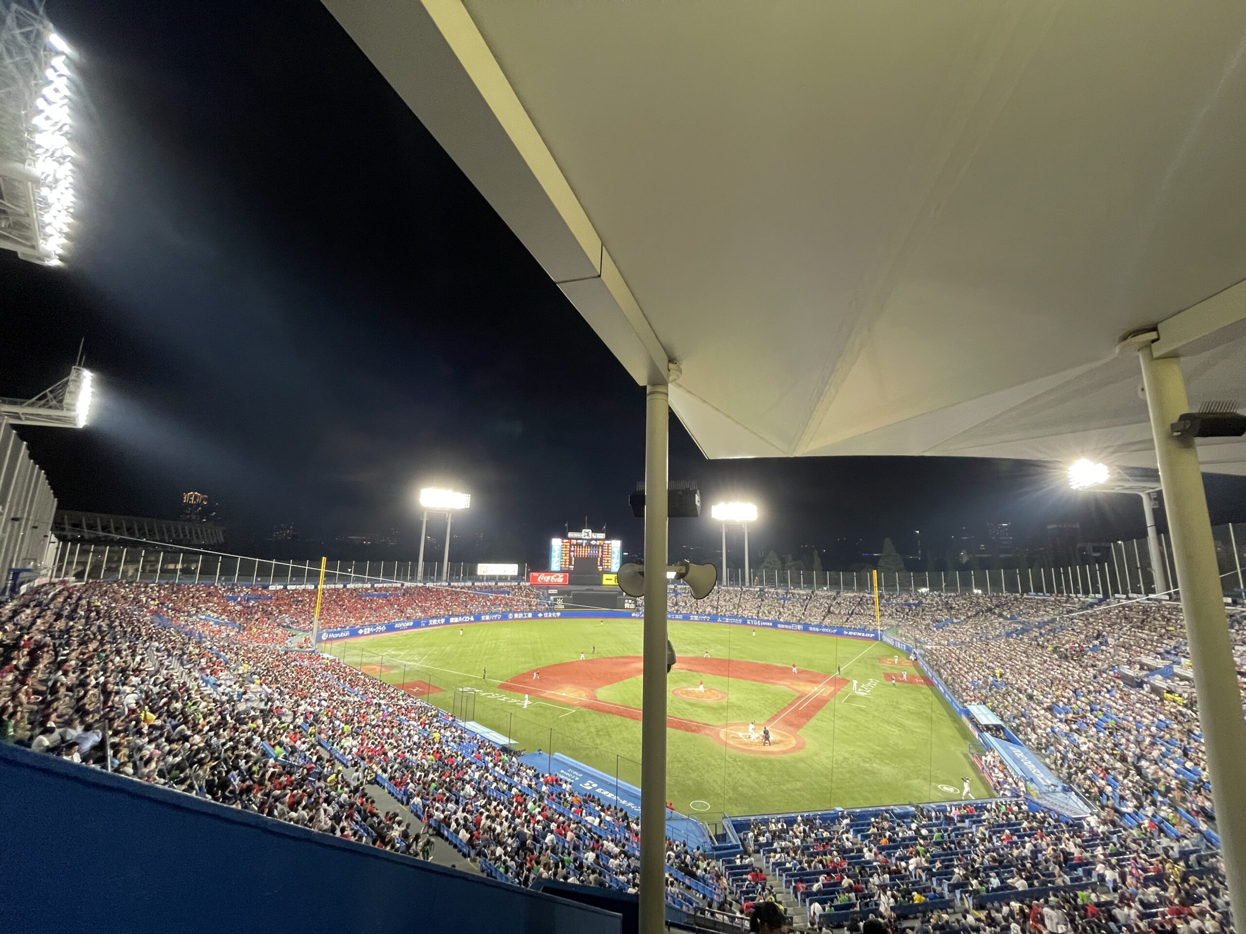 神宮球場では、一塁側がヤクルトスワローズ側、三塁側がビジターチーム側です。ここを間違えると、相手チームの応援している方たちに囲まれるといったアウェイな状況になってしまうため、最初にチェックしておきましょう。